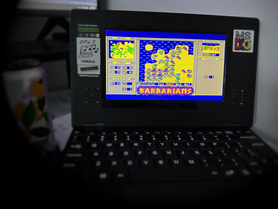 Runs beautifully on my Book 8088, another fantastic game by Cyningstan. Great use of the CGA color palette, and nice manual.
