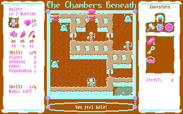 So being an adventurer hungry for glory, you think you should be the one to take on the quest, and venture down into The Chambers Beneath. This is a role-playing game, of a type sometimes known as a roguelike or a dungeon crawler. It is turn-based, meaning that the emphasis is not on fast reactions but on planning and careful con- sideration.